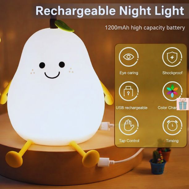 Cute Pear Shape Silicone Night Lamp – Touch Sensor LED Light